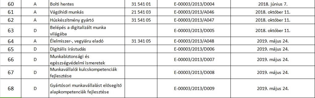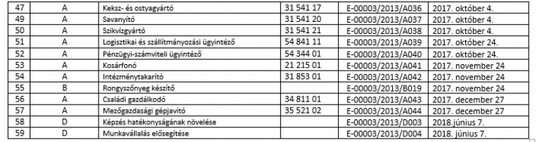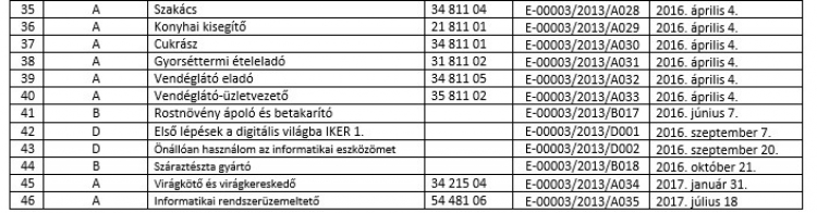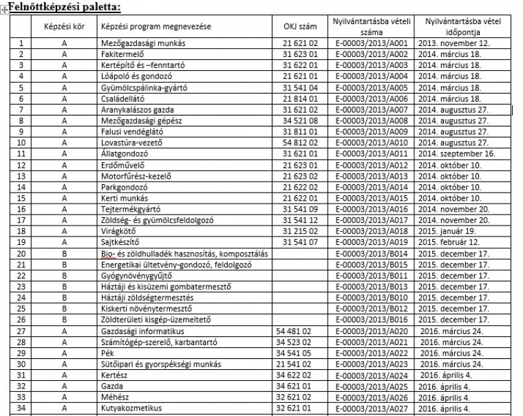 Az 58/2013 (XII.13.) NGM 2.§ (3) rendelet bekezdése alapján biztosítjuk a képzési programok